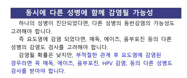 01]¸ðµç ¼ºº´Àº ÀϺο¡¼­ Áõ»óÀÌ ¾øÀ¸¹Ç·Î- ºÒ¾ÈÇÑ ¼º°ü°è°¡ ÀÖ¾ú´Ù¸é Áõ»óÀÌ ¾ø¾îµµ, Àẹ±â¸¦ °í·ÁÇÏ¿© ²À °Ë»ç·Î °¨¿°¿©ºÎ¸¦ È®ÀÎÇØ¾ß ÇÕ´Ï´Ù.